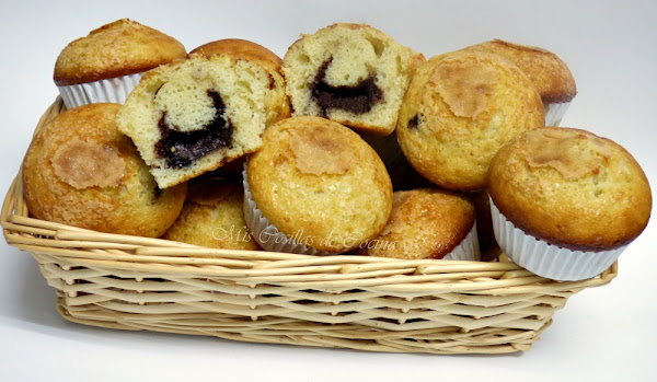 Ponemos una cucharada de la mezcla en los moldes de magdalenas y una cucharadita de nutella al gusto, acabamos de llenar hasta las 3/4 partes, ponemos un poco de azúcar por encima y horneamos unos 25 minutos.