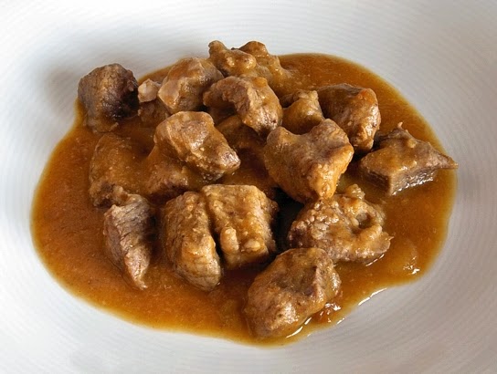 Dado la mala fama que incomprensiblemente tiene la carne de cerdo, a la que se acusa de tener mucha grasa, conviene recordar que, antes por el contrario, es una de las carnes más saludables y que dentro de una dieta sana e inteligente (comer de todo sin abusar de nada) debería ocupar un lugar destacado. Así por ejemplo, en los cortes magros como el lomo o el solomillo las grasas no superan el 3,5 %, y hay que destacar el contenido en ácidos grasos monoinsaturados, sí los mismos del tan alabado, y con razón, aceite de oliva. La carne de cerdo es también fuente de vitaminas del grupo B, (B1 y B12, sobre todo) así como de hierro y de zinc. Así que dejémonos de tópicos infundados y vamos a disfrutar de un rico y reconfortante plato de estofado, que por estos lares y en estos días buena falta nos hace. Y si su bolsillo se lo permite, utilice para esta receta carne de cerdo ibérico, cuyo única pega es, ay, su precio. Un último consejo: sirva este estofado después de unas verduras a la plancha o una ensalada a su gusto y tendrá una comida completa, rica y saludable. (Y no se olvide del pan para mojar...)