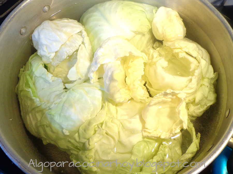 Lo primero es alistar las hojas de repollo, se pueden separar una a una antes de cocinarlas o cocinar el repollo entero y entonces separarlas, de la primera forma se cocinarán uniformemente.