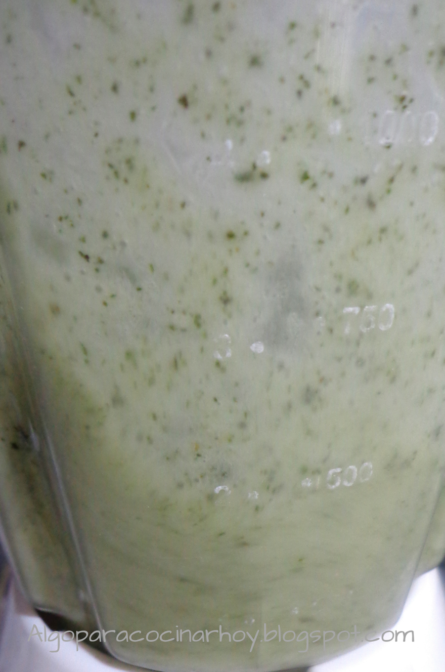 El condimento de los indios lo preparamos en la licuadora, colocamos en ésta la cebolla troceada, los dientes de ajo y las hojas de hierbabuena. A mí me gusta usar hojas secas por que dan mas sabor, en total usamos las hojas de dos ramitas de hierbabuena. Agregamos también el jugo de limón y el agua necesaria para que se licue sin inconvenientes (cerca de medio pocillo).