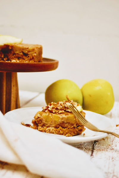 La receta cuenta de dos pasos, una base de manzana y un crocante por encima, yo antes de que se enfriara del todo la voltee y me quedo como una tarta
