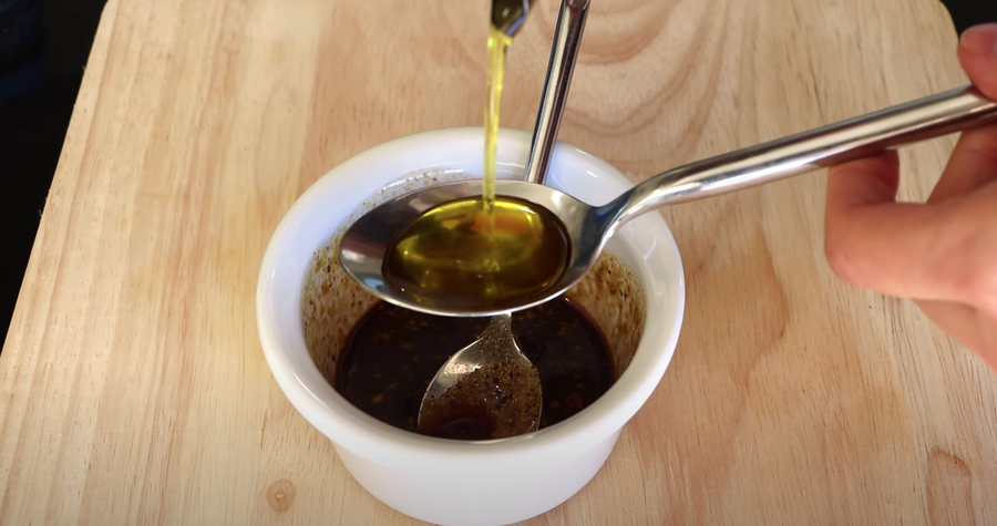 1. Preparar la salsa: mezclar mostaza, vinagre y miel. Agregue aceite y pimienta recién molida y revuelva.