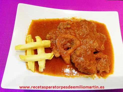 Cortamos los ingredientes muy picaditos,sofreimos bien en olla,pasamos el Osobuco por harina,