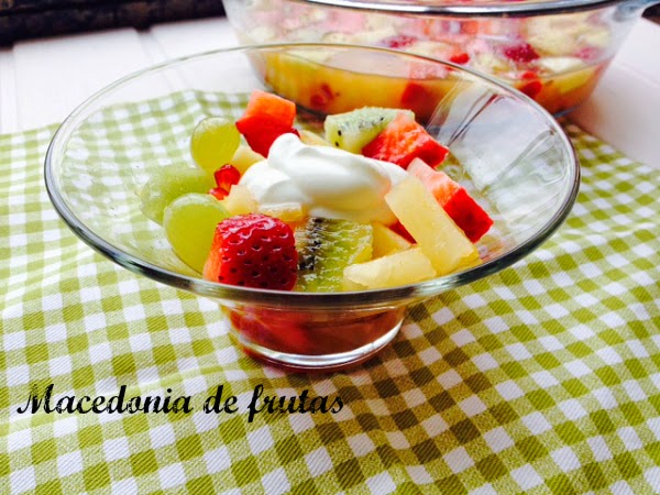 Para el postre os traigo algo ligero, pero que a mí me encanta. Es, sin lugar a dudas, uno de mis postres favoritos que, además, me permite hacer aprovechamiento de la fruta que tenga por casa. Es una macedonia de frutas, que traigo de No sin mi taper. Frutas variadas, azúcar o sirope de agave para endulzar, zumo de fruta y, si os apetece, yogur para acompañar. ¿Puede haber un postre mejor para terminar este menú? La receta al completo la tenéis aquí.