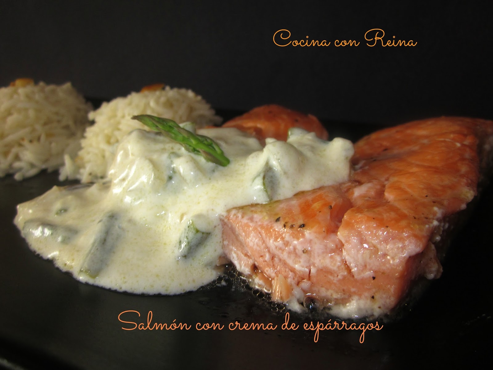 Para el segundo plato, como una sencilla propuesta de menú os traigo unos deliciosos lomos de salmón con salsa de espárragos que he visto en Cocina con Reina. Lomos de salmón ya limpios de piel y espina, cebolla, espárragos trigueros, un poco de nata... Pocos ingredientes, una elaboración sencilla y un resultado espectacular. Además, el salmón se prepara al horno, con lo que evitamos la adición de grasas innecesarias, y se acompaña con unos espárragos ligeramente hechos en una sartén, a los que añadimos un poco de nata para formar la salsa. Desde luego a mí, se me está haciendo la boca agua con este menú. Todos los detalles para preparar este salmón están aquí.