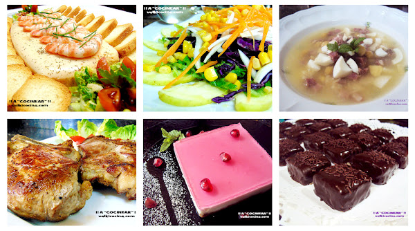 La amenaza navideña ataca de nuevo. Bueno, lleva dos meses atacando, que a este paso empezaremos a preparar la Navidad en agosto. Y como parece que, salvo un retiro de urgencia a la Tebaida, no hay forma de librarse del contagio, vamos a tomárnoslo con calma y a procurar no derrochar más de los estrictamente necesario. El menú que os propongo, formado por platos cuyas recetas se han publicado ya en este vuestro blog, no es ni muy pesado ni especialmente tradicional, lo que tiene dos ventajas: no acabar con la barriga a tope y salirse un poco de lo más trillado. Son recetas fáciles, no son caras y gustarán a todos. Y como el segundo plato es muy ligero, sea cual sea la opción elegida, bien se pueden incluir los dos. A las recetas completas se llega, claro está, a través de los correspondientes enlaces. Que disfrutéis y seas felices.