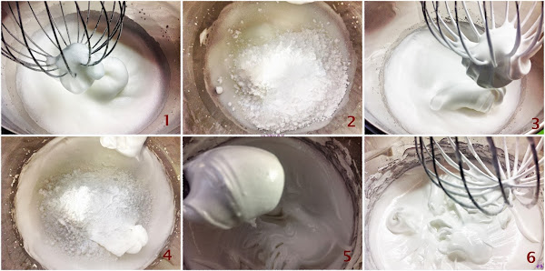 2. Cuando estén montadas, añade la mitad el azúcar tamizado (ya mezclado).