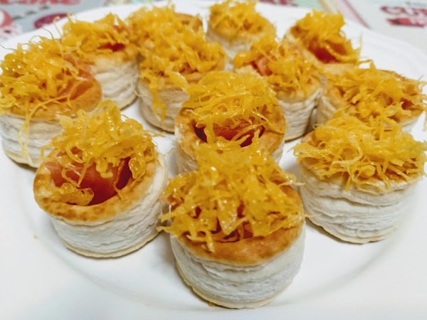 Más sencillo, rápido y rico no podía ser este canapé. Si os gusta el salmón ahumado y el ligero toque dulce del huevo hilado este canapé es el candidato perfecto para convertirse en un habitual en vuestros aperitivos y celebraciones.IngredientesVol au ventUn trozo de lomo de salmón ahumado o salmón ahumado laminadoHuevo hiladoElaboraciónCortamos el lomo de salmón ahumado en taquitos pequeños (si v ...