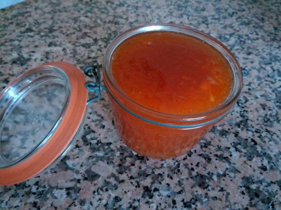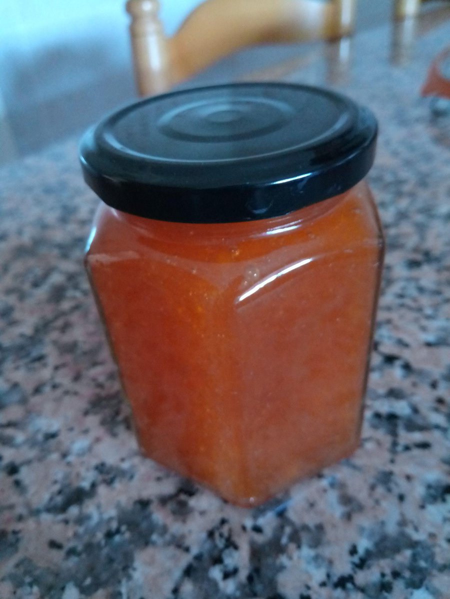Cuando la mermelada ya está a mi gusto relleno los tarros de cristal previamente esterilizados y los cierro bien. Les doy la vuelta hacia abajo durante 24 horas (otra manera es introducir los tarros de mermelada en una cazuela con agua hirviendo durante 30 minutos), para que se conserve durante más tiempo.