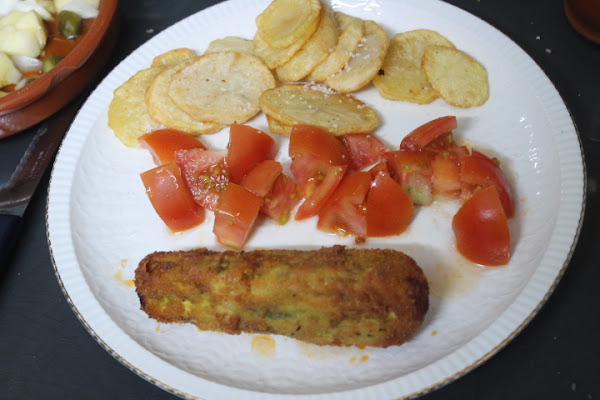 Además lo acompañe de pan untado con tomate y jamón y sobras de una lata de foie gras que puse en más pan tostadito, con eso y con las sobras que aun restaban de mi “flan de uvas azul”, cenamos la mar de bien.