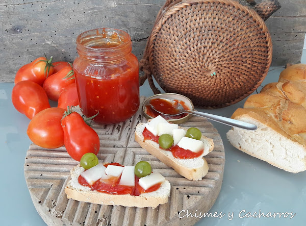 El siguiente paso es envasarla en frascos esterilizados y colocarlos bocabajo durante unas horas para que selle al vacío. Etiquetamos la mermelada de tomate con la fecha de elaboración y ya estará lista para guardarla en un lugar fresco y seco de la casa.