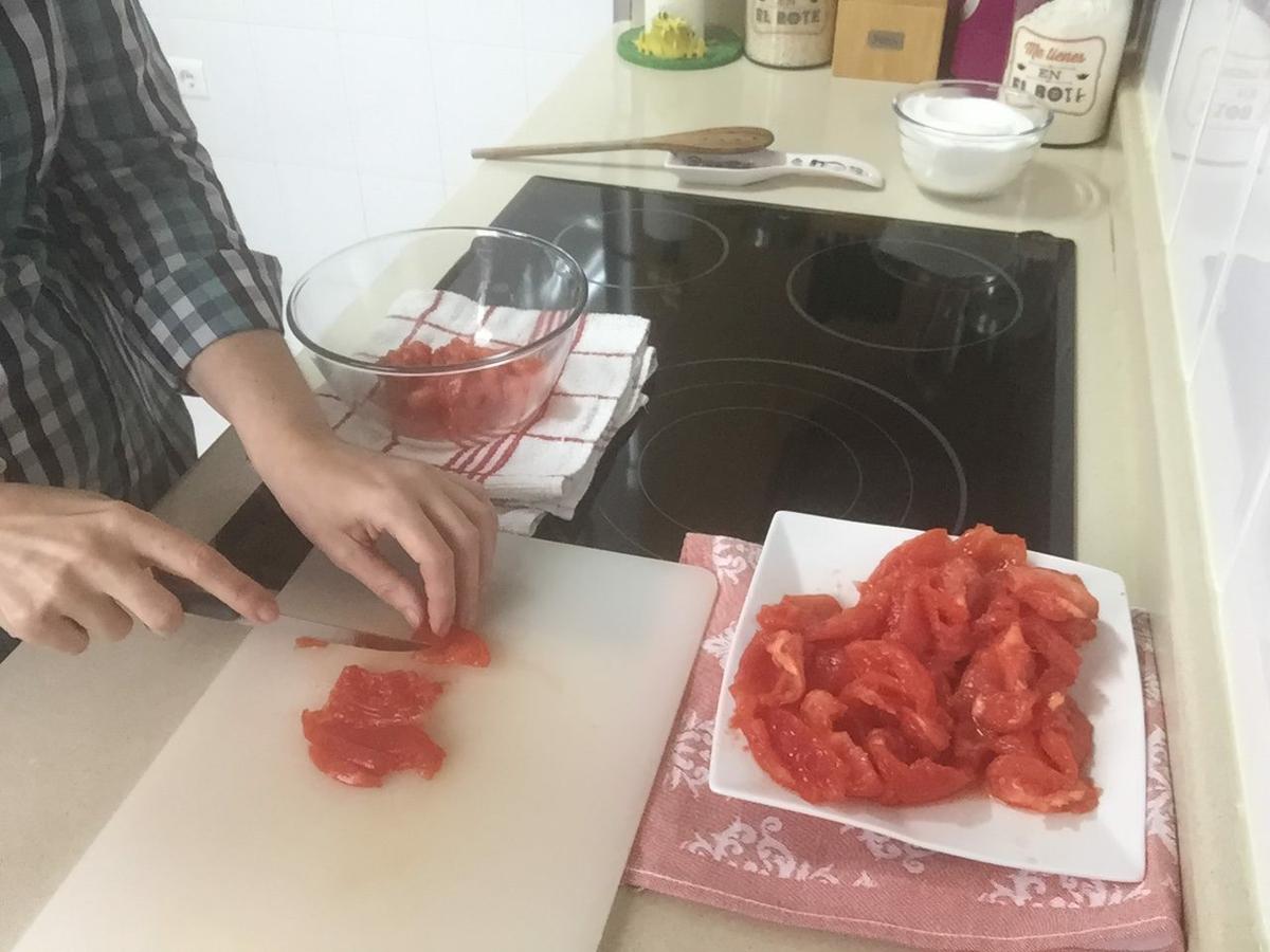 INGREDIENTES:1 kilo de tomates maduros 500 gramos de azúcar el zumo de un limón se puede añadir un clavo de especia,pimienta o alguna otra especia que queramos ELABORACIÓN: Escaldar los tomates en agua hirviendo durante 30 segundos, escurrir y pelar.Va a ser fácil porque al escaldar se desprende la piel sin esfuerzo.Retirar las semillas , la mayoría de la gente prefiere quitárselas todas pero a ...
