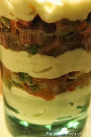 Montamos en vasitos individuales, una capa de cremoso de queso, una capita de verduras, otra capa de cremoso, otra de verduras y finalizaremos con una capa de cremoso.
