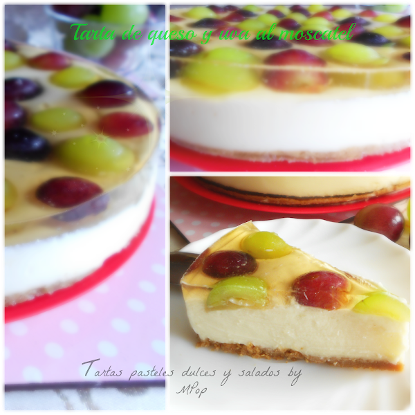 base (150 gr de tortas de almendras-60 gr de mantequilla derretida),tarta de queso (300 gr de queso philadelphia-240 ml de nata liquida-60 gr de azúcar-3 hojas de gelatina neutra-1/2 cucharadita de extracto de vainilla),200 gr de dulce de membrillo,gelatina de uva (200 ml de zumo de uva-3 hojas de gelatina neutra-uvas)La Tarta de Queso que vamos a preparar, es una tarta muy sencilla y que no necesita horno, para ello empezamos hidratando las hojas de gelatina ( ponemos la gelatina en un cazo con agua fría durante 5 minutos y luego la escurrimos perfectamente). Seguidamente en un cazo ponemos a calentar la nata (crema de leche) con el azúcar y removemos hasta que empiece a hervir, en este punto apagamos el fuego y echamos la gelatina hidratada, seguimos removiendo hasta su total disolución. Mientras que esperamos a que se enfríe un poco la nata (crema de leche), batimos el queso philadelphia con el extracto de vainilla hasta que quede una textura suave.