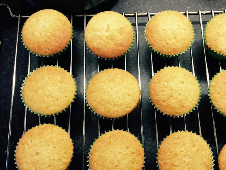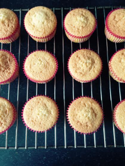 Cuando prepares cupcakes, una vez los hayas sacado del horno, los dejas reposar sobre una rejilla, sin sacarlos de la bandeja de hornear. Los dejas en la bandeja 5 minutos, y después los sacas y los dejas sobre una rejilla para que se terminen de enfriar del todo. Así evitas que se cree humedad dentro de la bandeja, lo que haría que las cápsulas se despeguen del cupcake. Por cierto, si como yo no tenéis una rejilla para enfriar, puedes utilizar la rejilla del horno.
