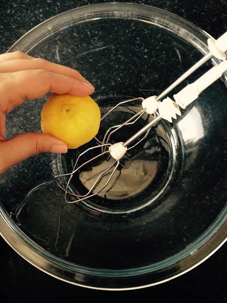 Montar claras puede ser un proceso difícil, incluso una pequeña cantidad de yema o un trocito de cáscara en el recipiente puede hacer que tus claras resistan tus esfuerzos para conseguir picos suaves y rígidos. Para obtener un buen resultado sigue estos pasos: Primero de todo, asegúrate que el recipiente y las varillas están perfectamente limpias, libre de grasa o cualquier tipo de residuo. Después, frota la superficie interna de tu bowl y tus varillas con medio limón o con un poco de vinagre de manzana, luego seca bien con papel de cocina antes de empezar a montar tus claras.