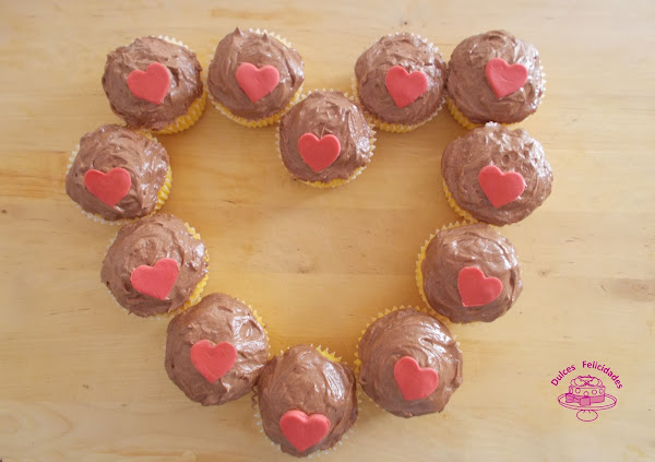 Todo mezclado menos el buttercream y al horno precalentado a 180ºC unos 20´. Cuando estén fríos se les pone el buttercream y se adornan con las obleas y los corazones.