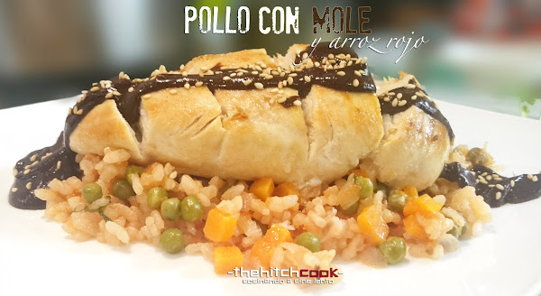Para servir coloca una pieza de pollo, vierte encima el mole hasta cubrirla y puedes espolvorear ajonjolí. Acompaña el mole con una sopa de arroz roja o blanca.