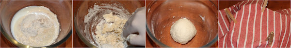 En un bol, añade la leche, la harina y la levadura desmenuzada. Mezcla bien los ingredientes con las manos y deja reposar un mínimo de 3 HORAS. Tapa con un paño de cocina.