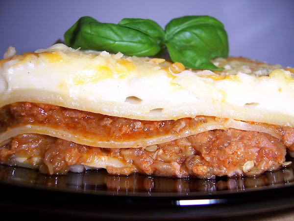 Esta receta de lasaña es una de las variaciones que suelo hacer.En esta ocasión, tenía una berenjena suelta y la he utilizado para que la carne resultase más jugosa, y así ha sido, un resultado estupendo...Ha salido una lasaña para seis raciones abundantes...INGREDIENTES:500 gr de carne picada, puedes ser mezcla, ternera y cerdo1 cebolla grande, 2 ajosUna o dos berenjenas medianas, las grandes no ...