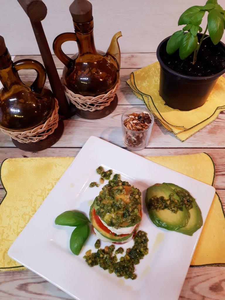Con la llegada del verano se apetecen recetas fresquitas y nada mejor para refrescar el organismo que una rica y completa ensalada. En esta ocasión os traigo una versión de la ensalada capresse, algo modificada, la cual he condimentado con una salsa pesto. Ha quedado exquisita. Os animo a prepararla ya que su elaboración es bien sencilla y el resultado bien merece la pena.