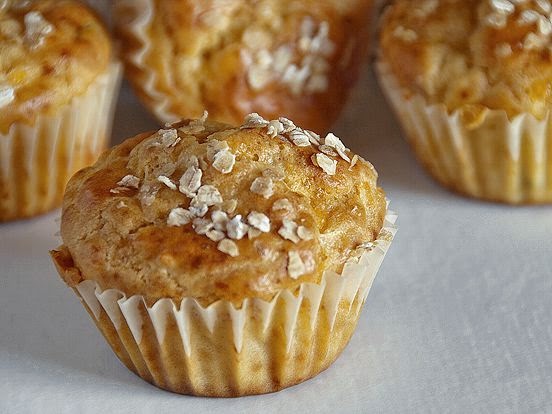 - Rellenamos con esta mezcla los dos tercios de unos moldes del tipo de que dispongamos (de papel, de aluminio, de silicona...) y espolvoreamos por encima con los copos de avena.