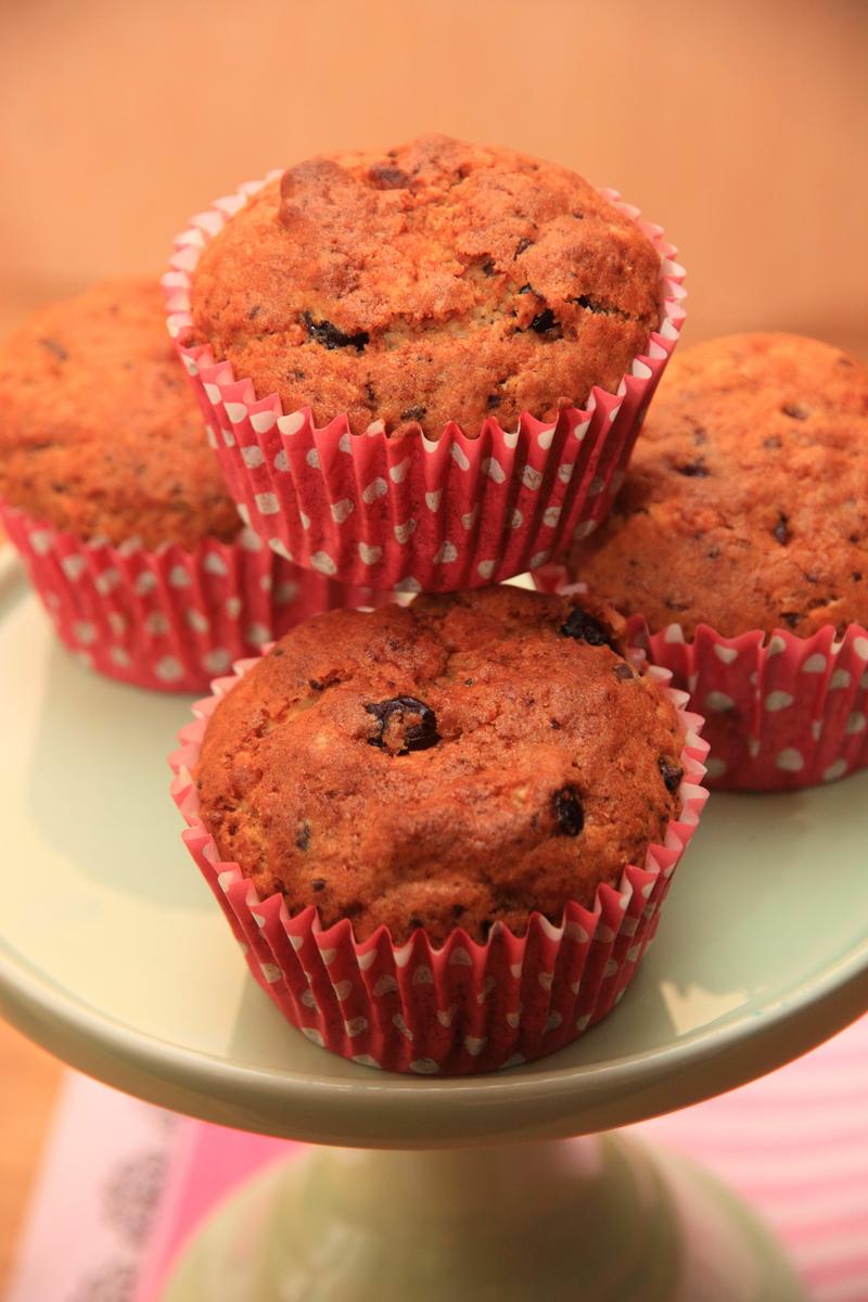 Receta clásica americana de muffins con arándanos y chocolate, perfecta para el desayuno o merienda