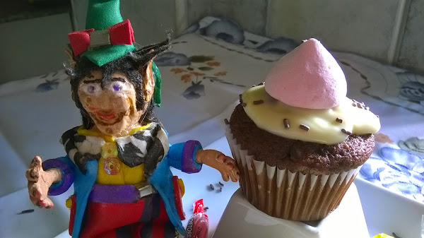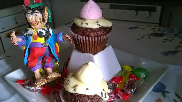 "Abuelo" me acaban de decir mis nietos, Queremos que nos Haga Magdalenas de Chocolates y yo como siempre. Correspondo y me decido hacerles para merendar unos Muffins de Chocolate, y han salido para comérselos, El muñeco que esta al lado de los Muffins no se comen, esta hecho de Cerámica fria y Goma Eva por mi, que también se me dan las manualidades, Bueno aquí tenéis la receta.