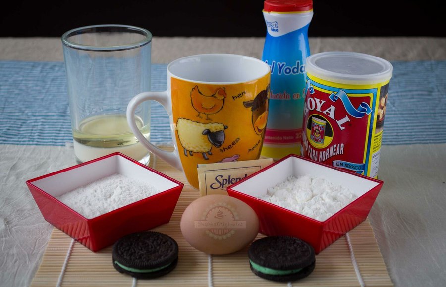 Los ingredientes que vamos a necesitar para hacer este Mug Cake son: huevo, aceite, leche, harina, levadura, edulcorante, una pizca de sal y galletas Oreo. Eso sí, si eres muy goloso puedes agregarle alguna cucharada de leche condensada.