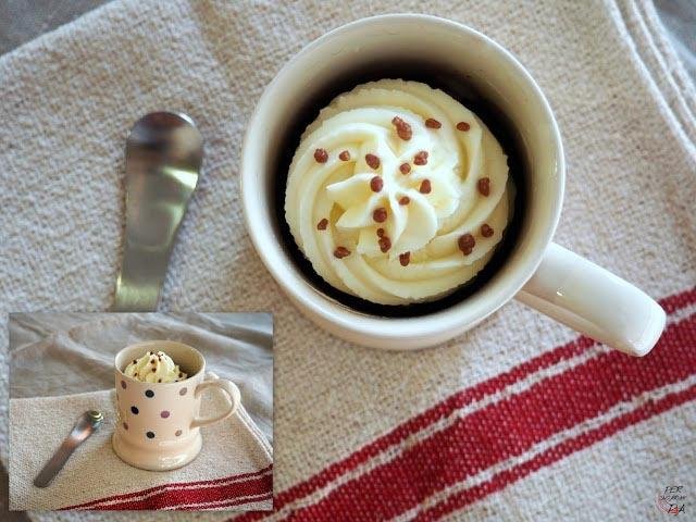 Pilar, del blog persucar-hi pa hace un mug cake que incluye, entre otros ingredientes, remolacha, lo que le hace tener un sabor buenísimo. Para hacerlo, tamiza y mezcla primero los ingredientes “secos” y va añadiendo poco a poco los líquidos junto con el puré de remolacha, luego vierte la mezcla en una taza y cuece en el microondas. Además lo decora con un frosting de mascarpone. ¡Está delicioso!