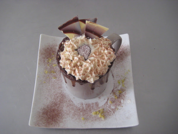 Es muy fácil, veréis. En la imagen se ve claramente que el interior de nuestro mug de chocolate está algo líquido, si lo queréis más hecho solo dejarlo unos segundos más en el microondas.