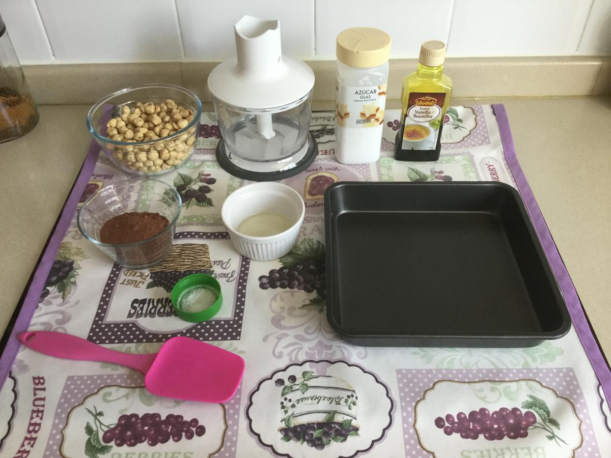 Como siempre, disponemos los ingredientes medidos y pesados y los utensilios que vayamos a utilizar.