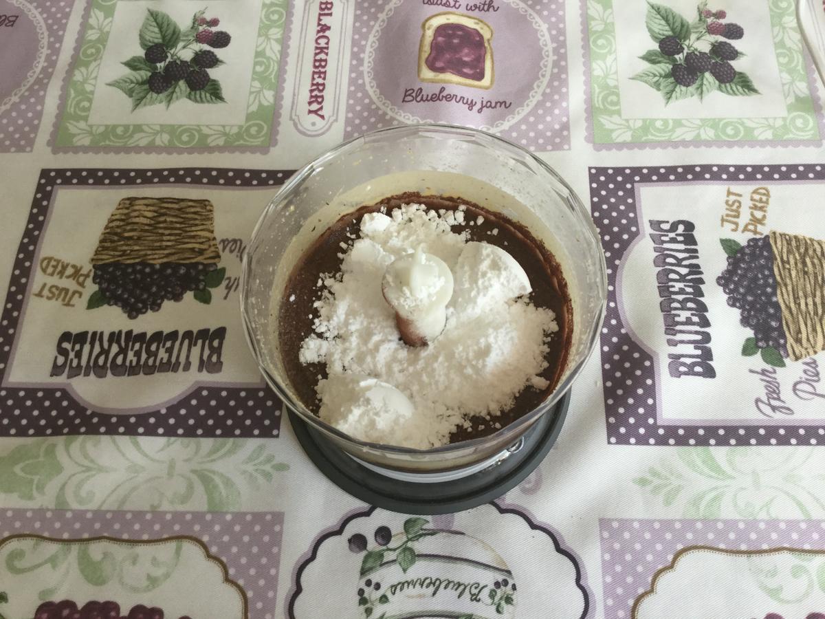 Dejamos descansar un poquito la máquina para que enfríe el motor y vamos a ir añadiendo el resto de los ingredientes a potencia mínima. Ahora ya no tenemos que picar, sólo es integrar en la pasta que hemos obtenido.