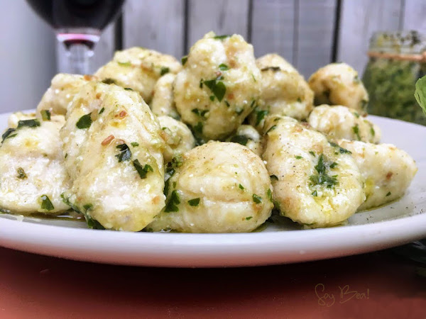 Yo prepare mi sartén con un poco de pesto, fui cociendo mis ñoquis y con un pequeño colador los fui volcando sobre mi pesto unos segundos y serví.