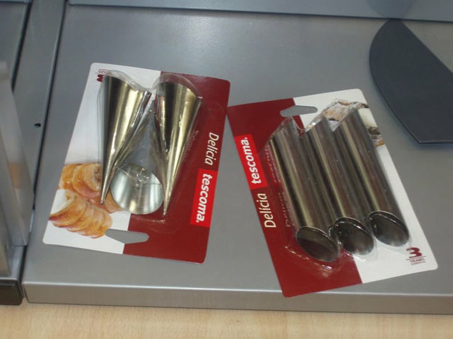 Tescoma no podía faltar a esta cita. En su stand se podían admirar todo tipo de artículos clásicos como baterías de cocina, cuchillos, menaje o moldes de todo tipo. De estos últimos destacan los de la fotografía. Los de la izquierda han sido muy solicitados por los foros para hacer unos curiosos aperitivos en forma de cono.