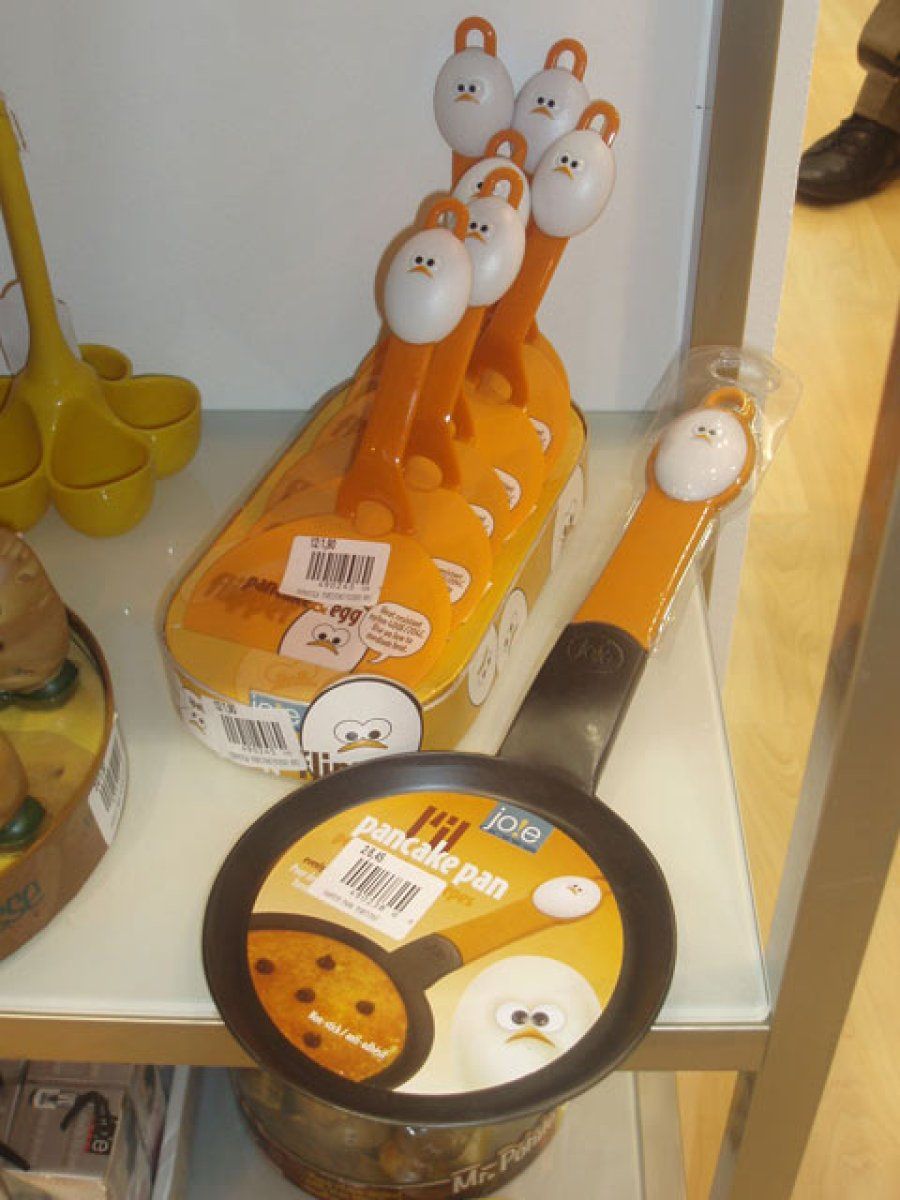 Una manera de recordar para qué sirve cada utensilio es que tenga la forma del alimento para el que se usa. Eso es lo que hacen exactamente los artículos de Jo!e distribuidos por Importaciones Palacio Oriental. Podemos tener peladores y limpiadores de patatas muy divertidos o espumaderas y sartenes especiales para huevos.