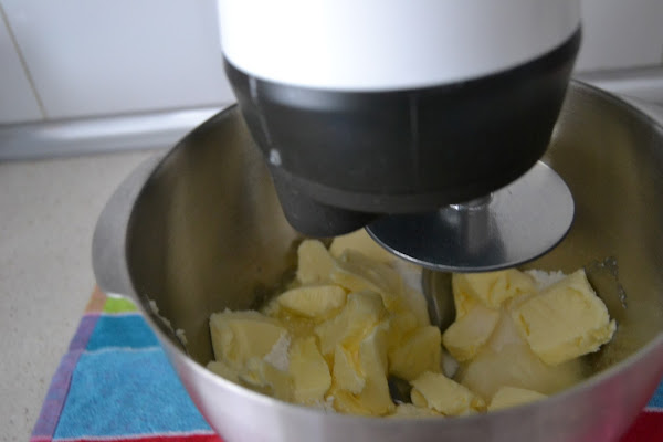 Después le agregamos la manteca fria, cortada en cuadraditos y la integramos sin tocar con las manos.