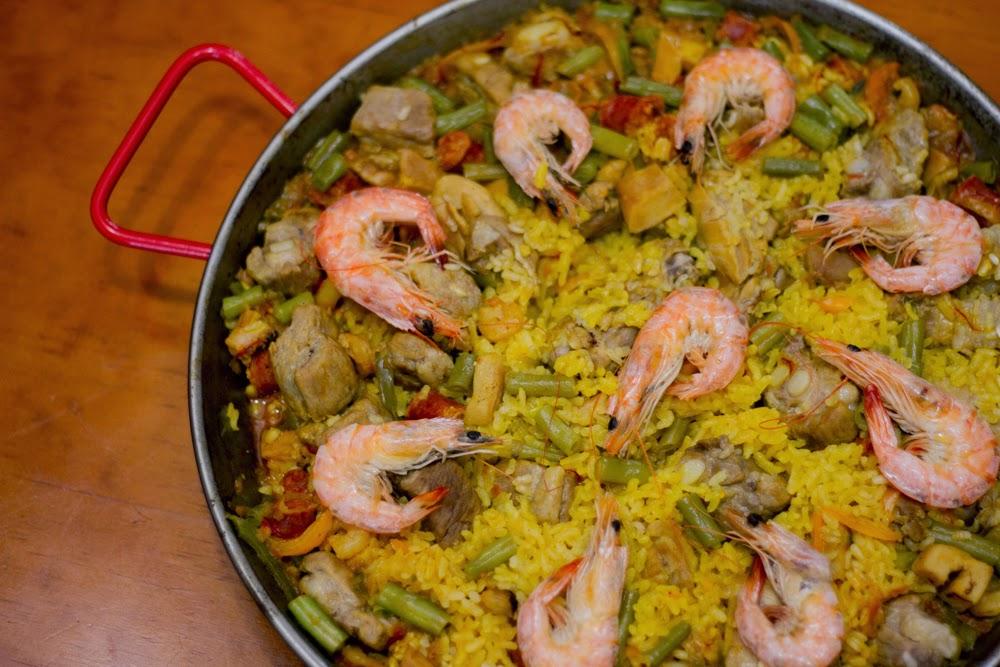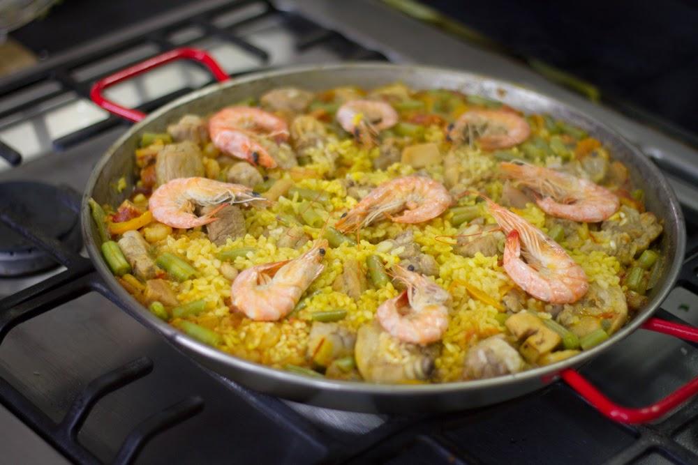 La receta de paella se trata de un platillo de origen humilde que nació en la Albufera de Valencia, la popuradidad de la paella ha hecho que la gente que la prepara vaya cambiando algunos ingredientes como conejo, carne de cerdo, pollo, caracoles, entre otros ingredientes. La paella se ha convertido en unos de los iconos de la gastronomía española.