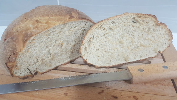500 gr. harina de fuerza,325 ml. agua,2 cucharaditas levadura seca de panaderia,1/2 cucharadita sal,300 gr. queso cheddar1ª Elaboración: