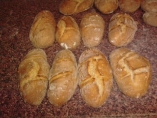 Y por ultimo, dar unos cortes y hornear a 180 ºC durante 30 ó 35 minutos.Cuanto mas grande es el pan, mas tiempo debe estar cociendo.