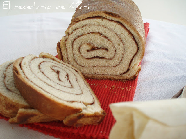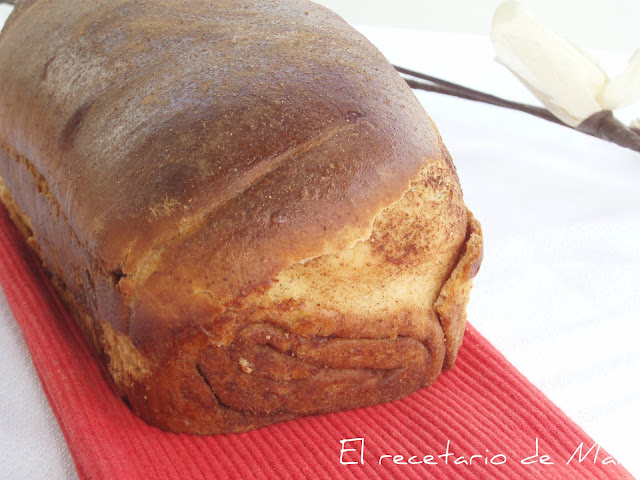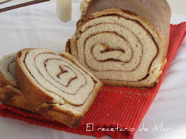 Cogemos un molde rectangular (tipo plumcake) y lo pincelamos con el batido de leche y huevo por toda su superficie . Metemos el enrollado poniendo el pliegue hacia abajo. Dejamos descansar la masa 40 minutos o hasta que doble el volumen. Pasado este tiempo pincelamos la masa con el batido de leche y huevo, terminamos espolvoreando con canela.