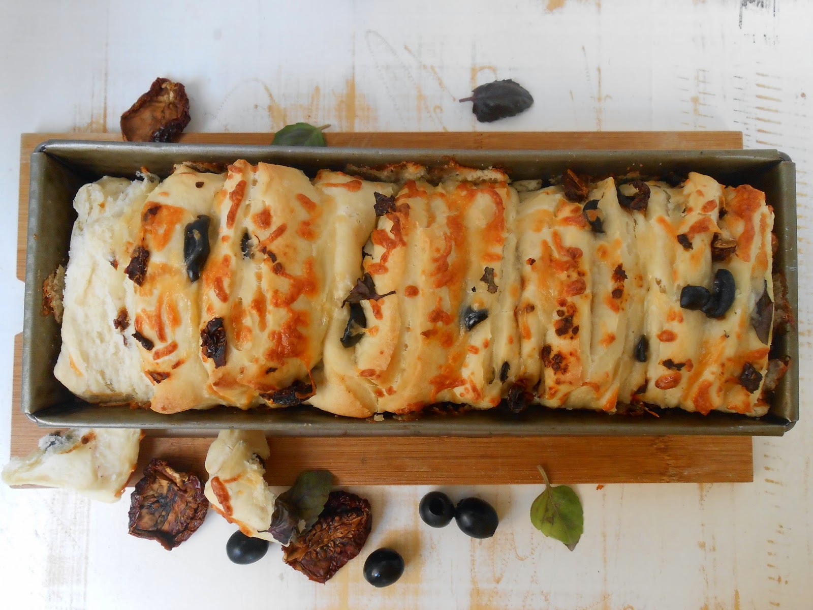 ¡Este pan pull-apart de pizza se cubre con mantequilla de ajo, se rellena con rellenos de pizza y se remata con mucho queso!