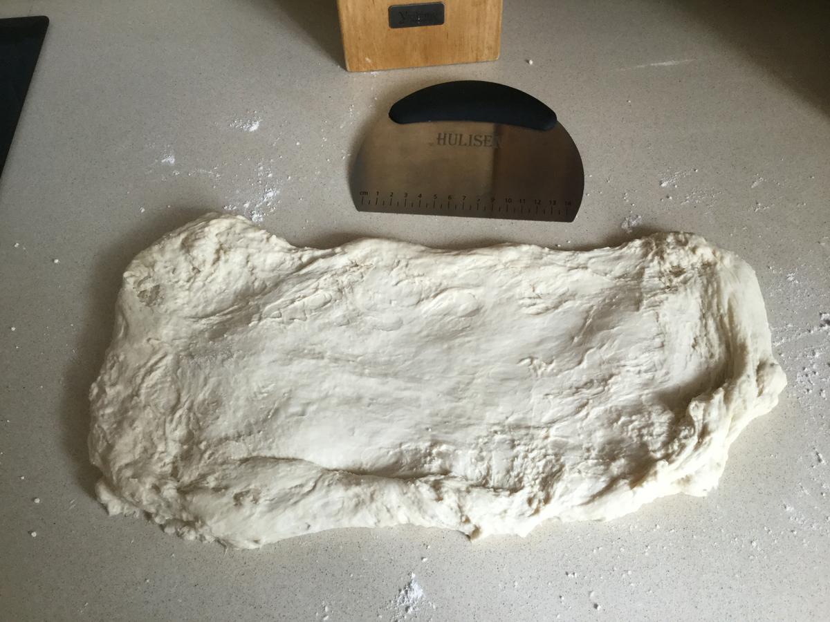 Resulta muy útil ayudarse con una rasqueta de panadero/pastelero para mover la masa.