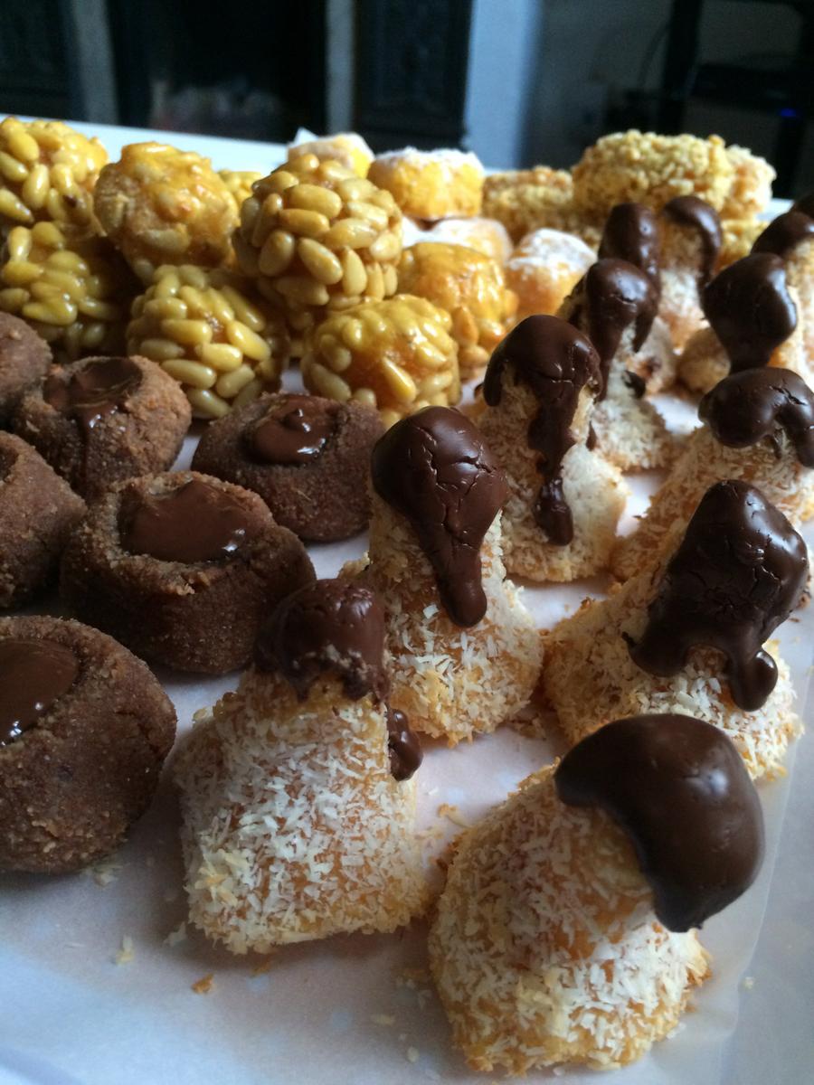 Mezclamos parte de la masa con coco. Después hacemos montañitas como veis en las imágenes y las rebozamos otra vez por coco. He calentado al microondas chocolate para fundir y les he puesto en las puntas. Horneamos unos 5 – 6 min hasta que este el coco doradito.