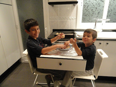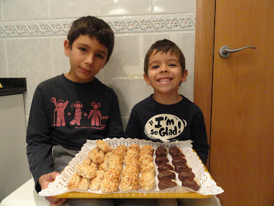 Como se acerca la castañada mis peques y yo hemos hecho estos riquisimos panellets. Os presento a IZAN de 9 años y a IKER de 5 añitos.