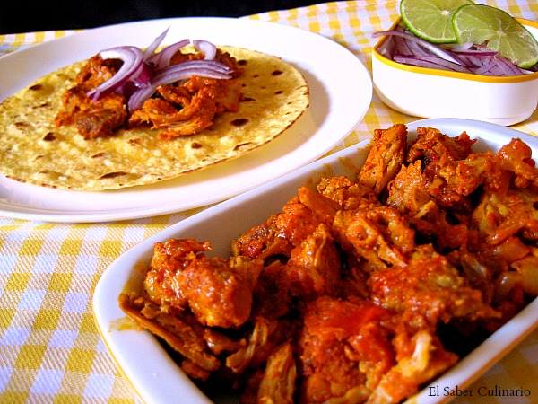 Después, salpimienta las piezas de cerdo. Como próximo paso, coloca los trozos de cerdo en una olla caliente y suma la pasta de achiote que preparamos al principio y tapa. Solo queda cocinar a fuego lento por más o menos una hora y media. Por último, retira del fuego y pon la olla en una tabla de madera. Con unas pinzas y un tenedor, desmenuza el cerdo. Ahora pasemos a ver qué podemos hacer para acompañar la cochinita pibil.