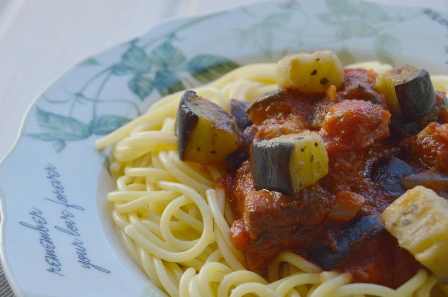 esta receta de pasta allá norma, es uno de esos platos que hablan de la tierra que los vio nacer, quintaesencia de la cocina mediterránea: tomates, berenjenas, queso de oveja, aceite de oliva, y la pasta, por supuesto. Sabores delicados, cocina sencilla y casera.