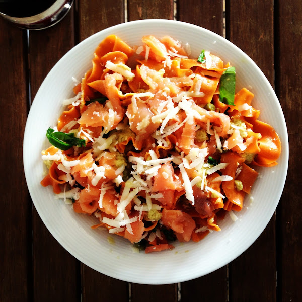 1 paquete de tu pasta preferida. Yo ocupé Tagliatelles frescos