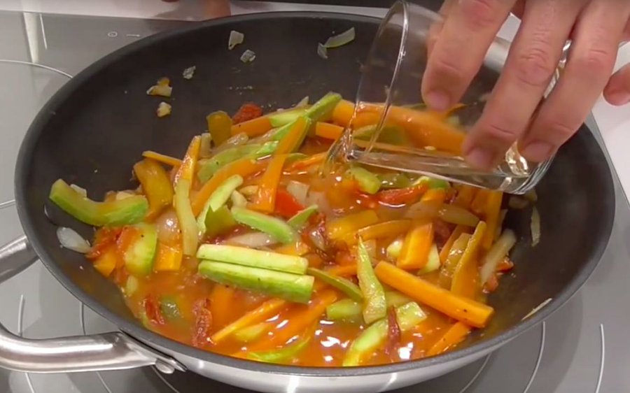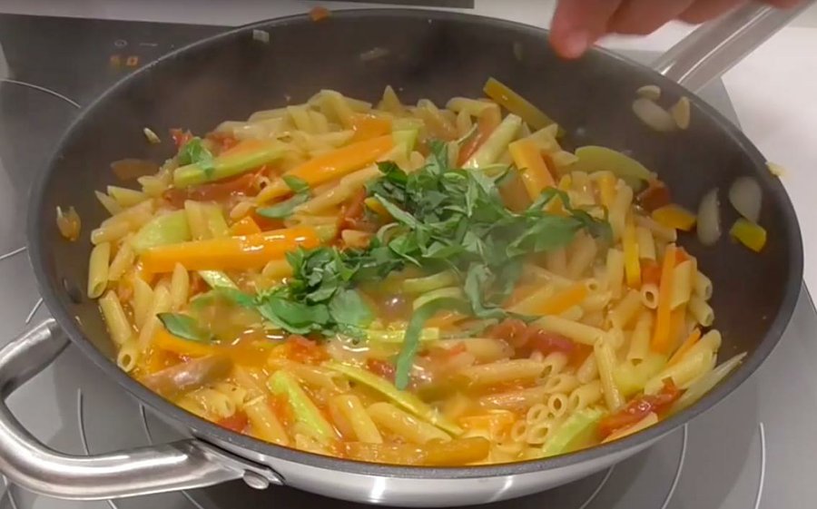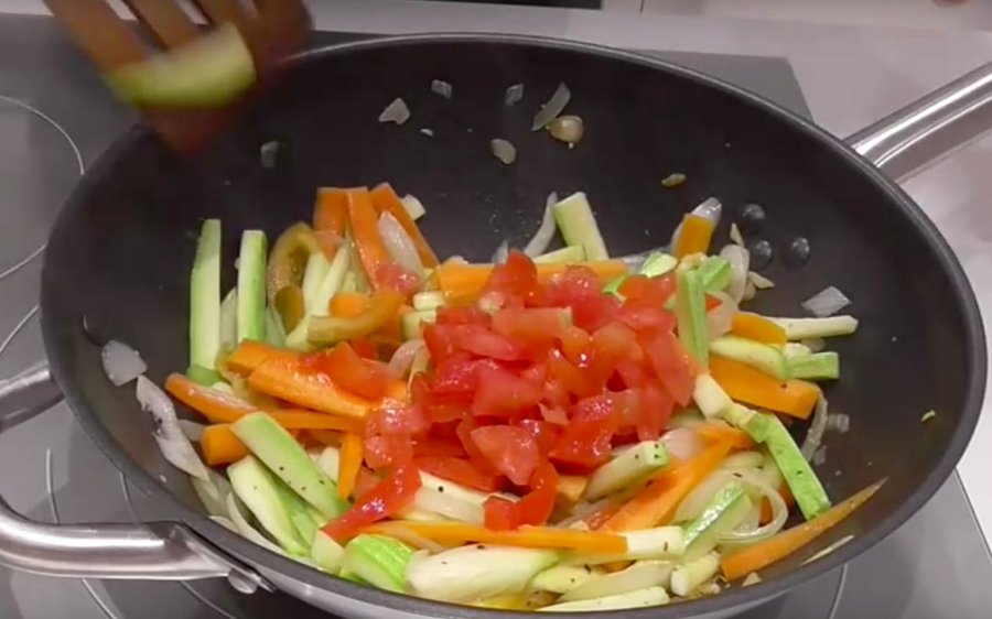 Esta receta de pasta con verduras al wok viene acompañada de un video que os lo dejo aquí: