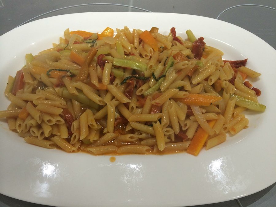 Hoy la receta que vamos a compartir es una receta de pasta con verduras al wok pero hecha de una manera distinta.